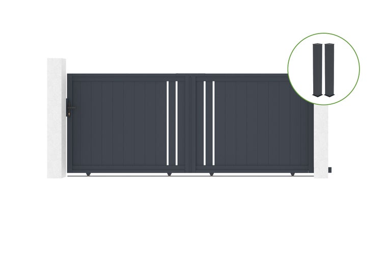 Schiebetor 3,5m GIONA H.140cm graues Aluminium + 2 Pfosten 20x20cm H.166cm