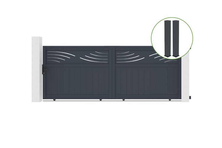 Schiebetor 3,7 m HALTI H.140 cm graues Aluminium + 2 Pfosten 20 x 20 cm H. 166 c