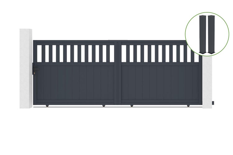 Schiebetor 3,7m SANTIS H.140cm graues Aluminium + 2 Pfosten 20x20cm H.166cm