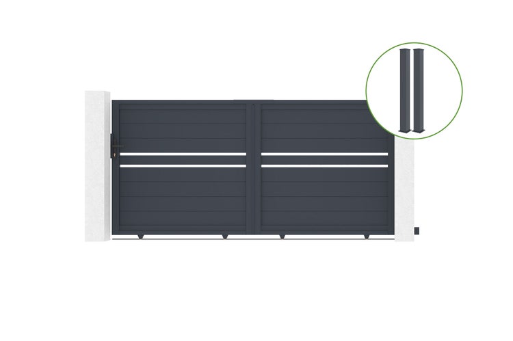 Schiebetor 3 m CIMONE H.140 cm Aluminium + 2 EIFEL-Pfosten 15 x 15 cm H. 166 cm