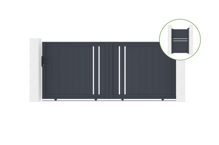 Schiebetor 3 m GIONA H.140 cm aus grauem Aluminium + Tor 1 M CIMONE H.140 cm aus
