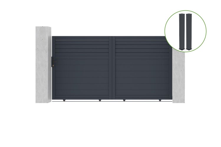 Schiebetor 3m CARPATIA H.160cm graues Aluminium + 2 Pfosten 20x20cm H.190cm
