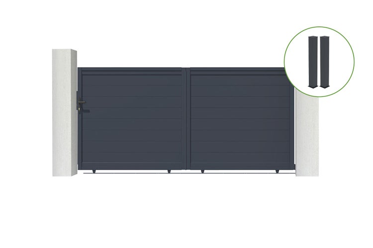 Schiebetor 3m EIGER H.140cm graues Aluminium + 2 Pfosten 20x20cm H.166cm