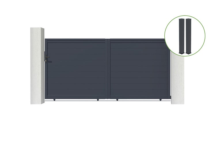Schiebetor 3m EIGER H.160cm graues Aluminium + 2 Pfosten 20x20cm H.190cm
