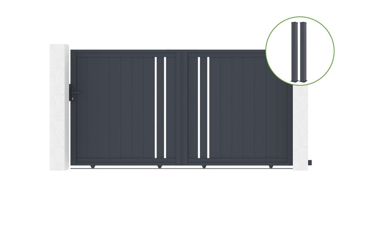Schiebetor 3m GIONA H.180cm Aluminium + 2 EIFEL-Pfosten 15x15cm H.190cm GRAU