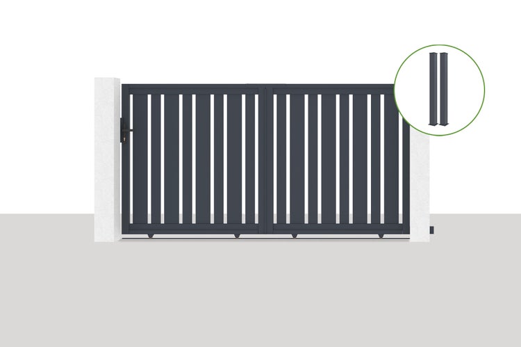 Entdecken Sie unser Aluminium-Schiebetor VEYMONT mit seinem einzigartigen Look dank der Mischung aus unterschiedlich großen Lamellen, die für eine unvergleichliche Originalität sorgen.