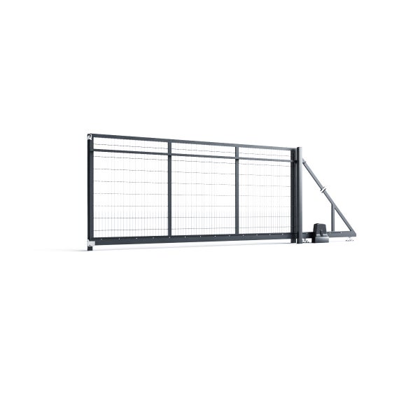 Schiebetor 4,0m breit 1,8m hoch RAL 7016 anthrazit 6/5/6 inkl. Zubehör mit 100x100 Pfosten und Motor Öffnungsrichtung rechts