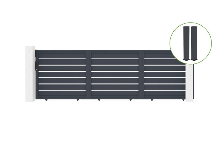 Schiebetor 4,5 m VOGEL H.140 cm Aluminium + 2 EIFEL-Pfosten 20 x 20 cm H. 166 cm