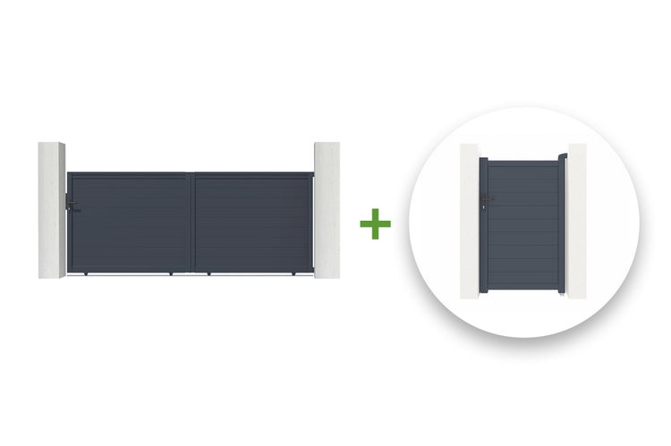 Schiebetor 4m EIGER H.160cm + Gartentür 1m EIGER H.160cm aluminium grau