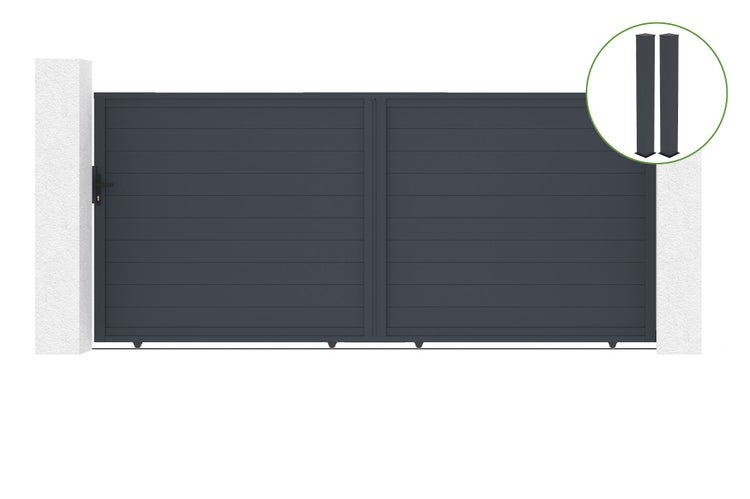 Schiebetor 4m EIGER H.180cm graues Aluminium + 2 Pfosten 20x20cm H.190cm