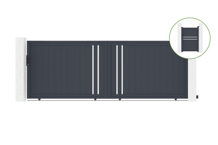 Schiebetor 4m GIONA H.140cm graues Aluminium + Tor 1M CIMONE H.140cm Aluminium