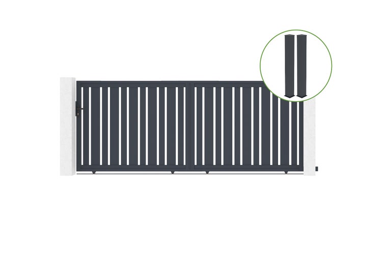 Schiebetor 4m VEYMONT H.160cm graues Aluminium + 2 Pfosten 20x20cm H.190cm