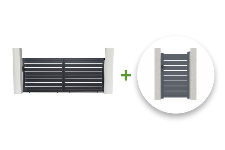 Schiebetor 4m VOGEL H.160cm + Gartentür 1m VOGEL H.160cm aluminium grau