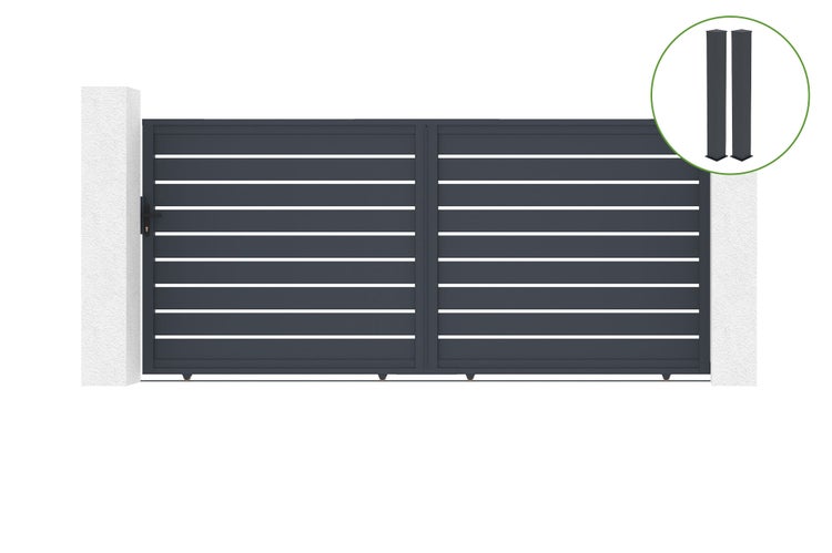 Schiebetor 4m VOGEL H.180cm graues Aluminium + 2 Pfosten 20x20cm H.190cm