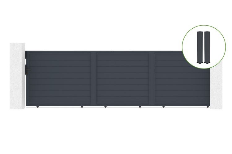 Schiebetor 5m EIGER H.140cm Aluminium + 2 EIFEL-Pfosten 20x20cm H.166cm GRAU