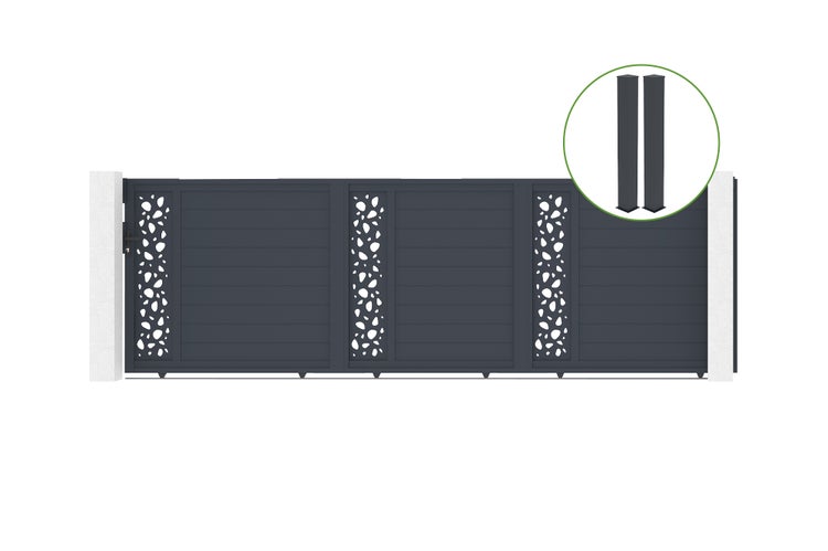 Schiebetor 5m SUNNY H.160cm Aluminium + 2 EIFEL-Pfosten 20x20cm H.190cm GRAU