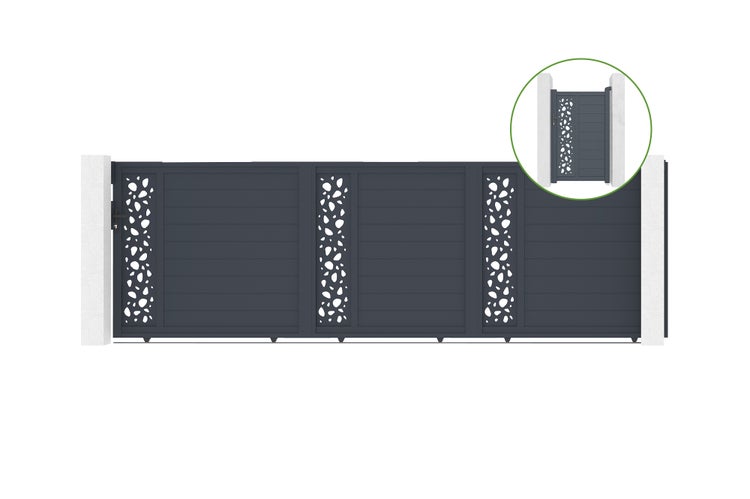 Schiebetor 5m SUNNY H.160cm Aluminium + Tor SUNNY H160 GRAU