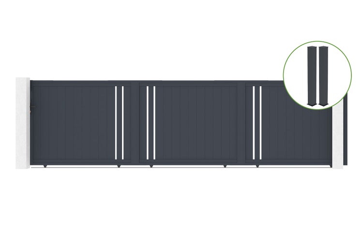 Schiebetor 6m GIONA H.160cm Aluminium + 2 EIFEL-Pfosten 20x20cm H.190cm GRAU