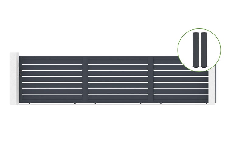 Schiebetor 6m VOGEL H.140cm Aluminium + 2 EIFEL-Pfosten 20x20cm H.166cm GRAU