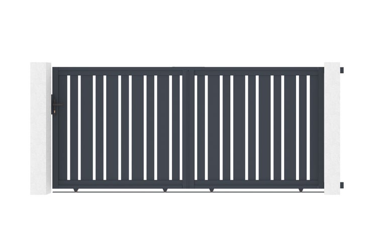 Entdecken Sie unser Aluminium-Schiebetor VEYMONT mit seinem einzigartigen Look dank der Mischung aus unterschiedlich großen Lamellen, die für eine unvergleichliche Originalität sorgen.