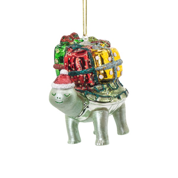 Verleihen Sie Ihrem Weihnachtsbaum mit dem Schildkröte mit Geschenken Weihnachtskugel von Sass & Belle eine Portion Humor und Charakter.