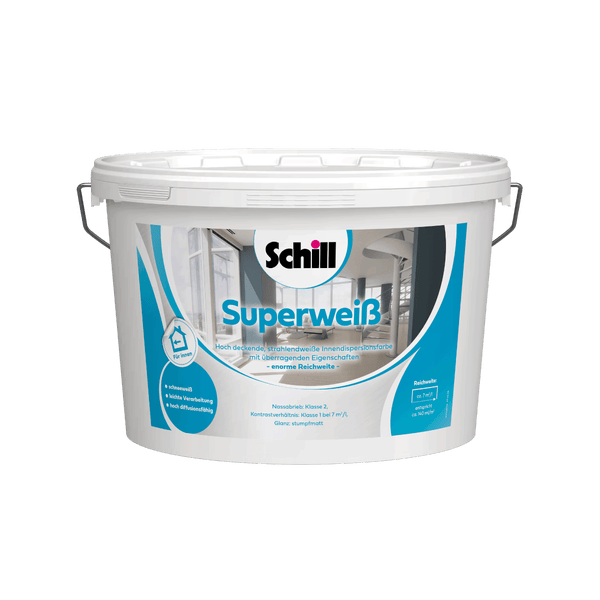 Schill Superweiß ist eine hochdeckende, scheuerbeständige Innenfarbe für Wände & Decken. Umweltfreundlich, geruchsarm & ideal für Wohnräume.