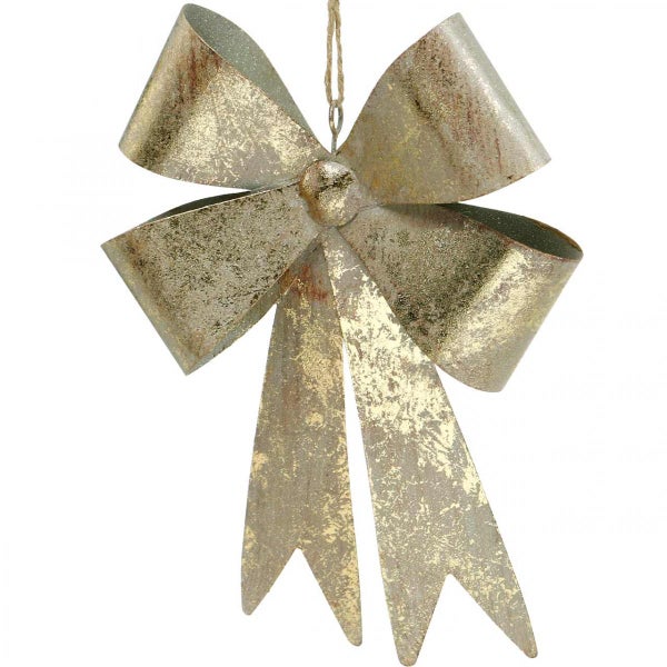 Schleife zum Hängen - Christbaumschmuck & Metalldeko - Antik-Optik, Golden H23cm B16cm