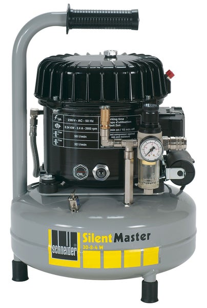 Mobiler KolbenkompressorDirektgeflanschtes Aggregat1 ZylinderSerienmäßig mit allen Sicherheitsarmaturen und elektrischem Anschlusskabel mit SteckerDruckluftbehälter ausgestattet mit Sicherheitsventil, Behälterdruckmanometer und KondensatablassventilGeräuscharm durch Spezial-SchalldämmungTragbarVollautomatischer Betrieb über DruckschalterLuftabgang mit Schnellkupplung für einfachen Anschluss von DruckluftgerätenArmatureneinheit mit Filterdruckminderer für geregelte sowie von Kondensat, Schmutz und Öl gereinigte DruckluftManometer für ArbeitsdruckNahezu geräuschlos arbeitend. Deshalb speziell direkt am Arbeitsplatz bestens einsetzbarHervorragend geeignet für Airbrush-ArbeitenMit Druckentlastung für lastfreien AnlaufMit Spezialkopf für geringere Betriebstemperaturen und damit besonders geringen Restölanteil in der Druckluft10 Jahre Garantie auf Behälter gegen DurchrostungSilentMaster Technische DatenDruck8 barAnsaugleistung50 l/minFüllleistung36 l/minDrehzahl2900 min-1Beh.-Vol.9 lAbmessungen (BxTxH)360x360x480 mmGewicht22 kgGeräusch33 dB(A)Ölmenge0,7 lAntriebsleistung0,34 kWSpannung230 V Lautstärke:Schalldruckpegel LPA: 33 dB(A)in 4 m Abstand nach 79/113 EWG, L(PA4)Schallleistungspegel LWA: Keine Herstellerangabennach DIN EN ISO 3744 (RL 2000/14/EG)Für die Praxis ist folgender Zusammenhang wichtig:Der Schallleistungspegel von technischen Schallquellen liegt bei einem Messabstand von 1 m meistens um ca. 10 bis 15 dB höher als der Schalldruckpegel. ***************************************************Bitte beachten Sie, dass dieser Artikel per Spedition angeliefert wird, in der Regel 1-3 Werktage nach Zahlungseingang. Die Zustellzeiten der Speditionen sind Mo.- Fr., von ca. 7 - 17 Uhr, Anliefertage und -zeiten sind abhängig von der Tourenplanung des Spediteurs, wir haben darauf keinen Einfluss. Samstagszustellung ist nicht möglich. Wenn Sie eine Speditionssendung nicht selbst entgegen nehmen können, beauftragen Sie bitte einen Mitbewohner oder Nachbarn mit der Annahme: Bei Verweis auf einen Nachbarn ist ein Zettel mit einem entsprechenden Hinweis für den Spediteur an der Haus- oder Wohnungstür oder am Klingelschild an den voraussichtlichen Anliefertagen sinnvoll. Bitte geben Sie bei der Bestellung zwingend eine Telefonnummer mit an. Vielen Dank.