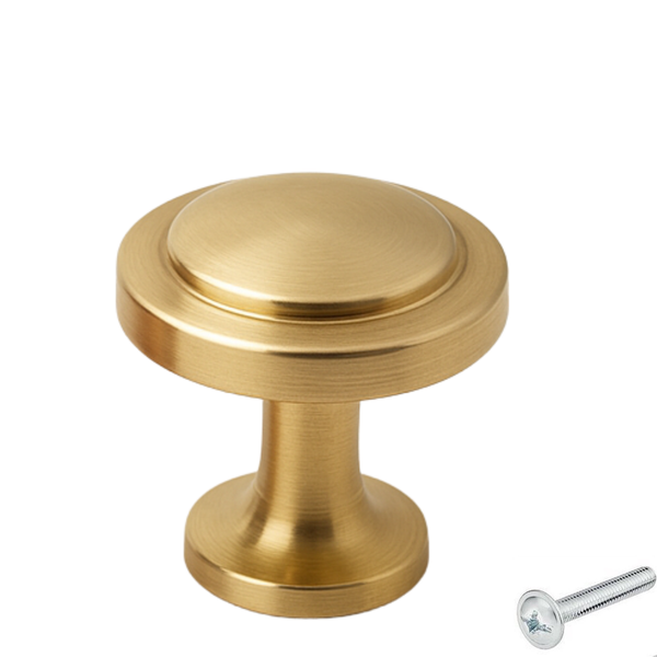 Möbelknopf / Schrankknopf – Memphis – Gold hat ein Schraubgewinde, Sie können diesen Griff mit den mitgelieferten Schrauben schnell und einfach montieren.
