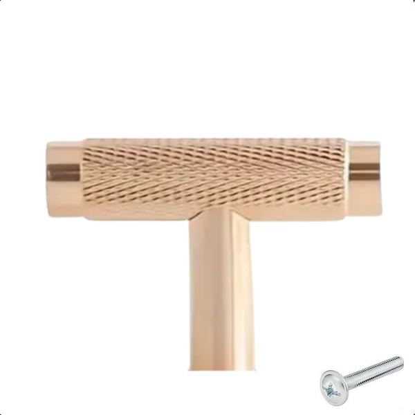 Verleihen Sie Ihrem Interieur eine moderne, stilvolle Note mit dem Möbelknopf Waco in mattem Gold. Dieser T-Griff verbindet elegante Optik mit hoher Funktionalität. Die fein geriffelte Oberfläche sorgt für eine angenehme, sichere Griffigkeit und eignet sich hervorragend für Küchen, Schränke oder Sideboards. Eine anspruchsvolle Wahl für alle, die Wert auf Details legen. Gefertigt aus hochwertigem Aluminium und mit einer widerstandsfähigen Mehrschichtbeschichtung veredelt, präsentiert sich der Waco-Knopf in zeitlosem Gold und lässt sich dank der beiliegenden Schraube mühelos montieren. Auf Wunsch ist er auch in Schwarz erhältlich, um einen besonders luxuriösen Akzent zu setzen.