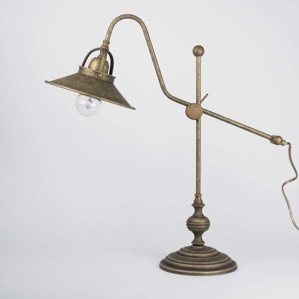 Schreibtischlampe Messing massiv verstellbar 60 cm hoch in Bronze Antik Vintage Design E27 Tischleuchte