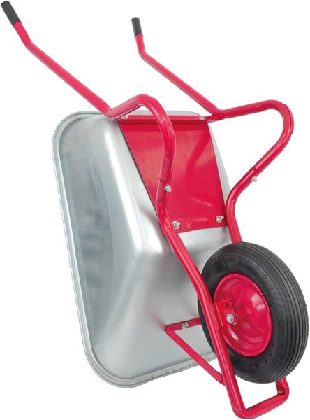 Schubkarre Matrix Profi 100L mit Bodenblech – Luftrad, Kugellager, verzinkte Mulde, rot – Transportkarre für Bau & Garten