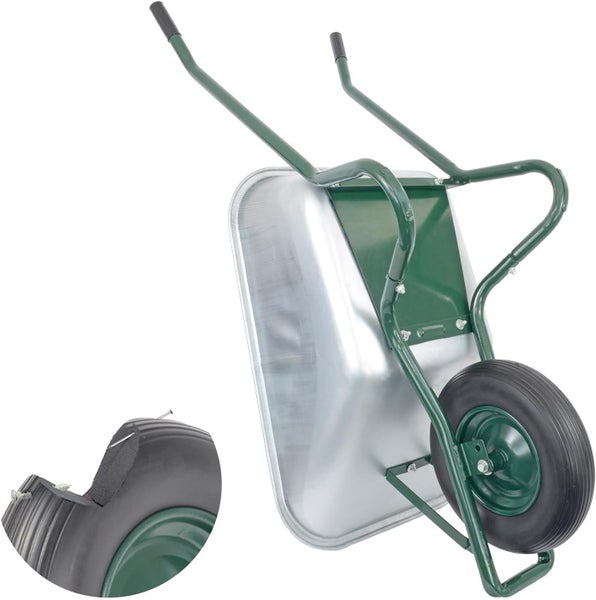 Diese Schubkarre ist mehr als nur eine Scheibtruhe. Sie ist eine zuverlässige Bauschubkarre, Gartenschubkarre und Transportkarre in einem. Dank pannensicherem Rad und stabilem Rahmen ist sie perfekt für alle, die eine robuste Lastenkarre suchen.