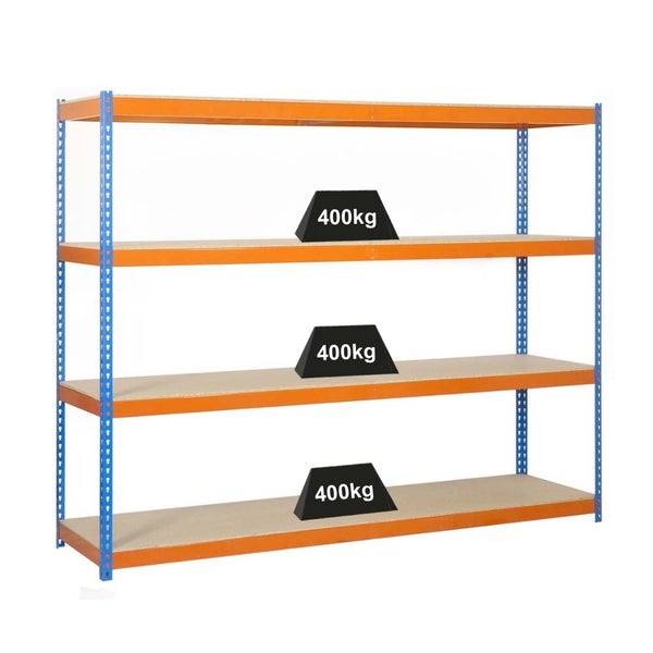 Schwerlastregal BIG WOOD YETI FOUR | HxBxT 200x120x45cm | Fachlast 400kg | Blau-Orange