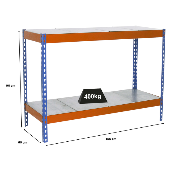 Schwerlastregal MINI METAL YETI TWO | HxBxT 90x150x60cm | Fachlast 400kg | Blau-Orange