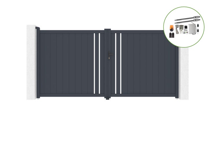 Schwingtor 3,5 m GIONA H.180 cm Aluminium + TANKER B250 Motorisierung