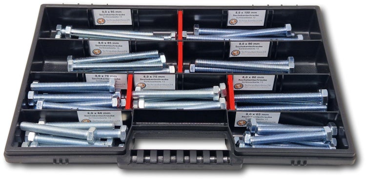Sechskantschrauben Sortiment M8 // 60mm-100mm 65 tlg Schraubenbox DIN 933/ISO4017 Vollgewindeschrauben Maschinenschrauben Gewindeschrauben Sechskantschrauben