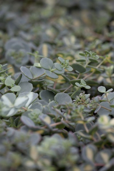 Sedum sieboldii, auch als Oktober-Fetthenne oder Hylotelephium sieboldii bekannt, ist eine kompakte, polsterbildende Staude mit besonderem Zierwert für Steingarten, Dachgarten und moderne Kübelbepflanzung. Die runden, blaugrünen bis graublauen Blätter sitzen in Dreierquirlen an elegant bogig überhängenden Trieben und zeigen je nach Saison einen feinen rosigen Rand. Im Spätsommer bis in den Herbst erscheinen flache Dolden aus zahlreichen sternförmigen, rosafarbenen Blüten, die den Blütenstaudenbeet einen klaren Farbakzent geben und zugleich die attraktive Laubstruktur betonen. Mit einer Höhe von etwa 10 bis 15 cm und einer Breite von 20 bis 30 cm eignet sich diese pflegeleichte Fetthenne als Bodendecker, Einfassungspflanze, für Trockenmauern sowie als dekorative Kübelpflanze auf Terrasse und Balkon; in Schalen, Ampeln oder als Solitär in einer Kiesfläche wirkt der Blüten- und Blattkontrast besonders edel, in Gruppenpflanzungen bildet sie ruhige, geschlossene Flächen im Vorgarten. Bevorzugt wird ein vollsonniger, warmer Standort mit durchlässigem, sandig-kiesigem, eher magerem Substrat; Staunässe und Winternässe sollten vermieden werden. Pflegeleicht und genügsam braucht Sedum sieboldii nur sparsam Wasser, ein lockerer Boden und eine Drainageschicht fördern den kompakten Wuchs. Ein Rückschnitt der vertrockneten Triebe im Frühjahr regt die frische Belaubung an, eine leichte Abdeckung im Gefäß schützt vor dauerhafter Nässe. In Kombination mit niedrig bleibenden Gräsern, Hauswurz oder anderen sukkulenten Stauden entsteht ein harmonischer, zeitloser Ziergarten-Charakter.