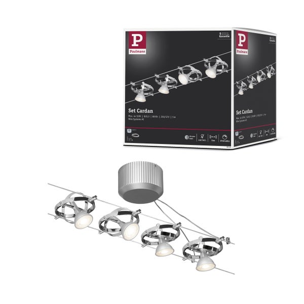 Seilsystem Cardan Basisset GU5,3 max. 4x10W dimmbar 230/12V Chrom matt, Chrom