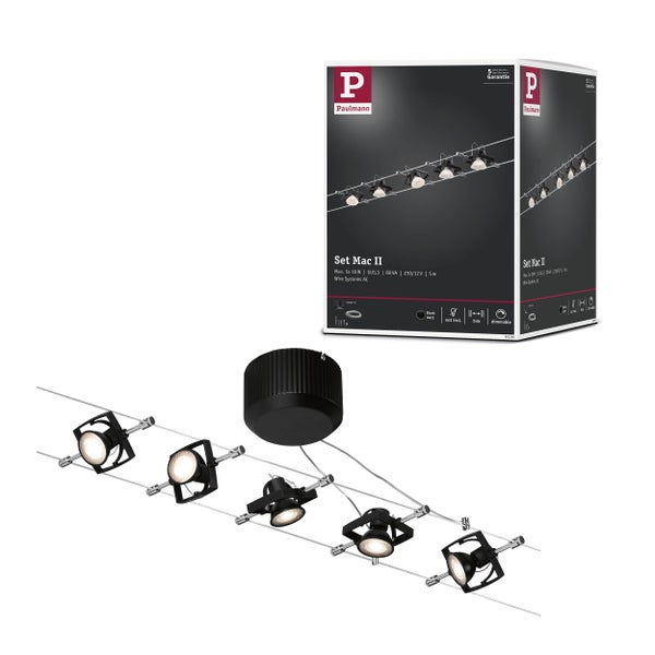 Seilsystem Mac II Basisset GU5,3 max. 5x10W dimmbar 230/12V Schwarz matt