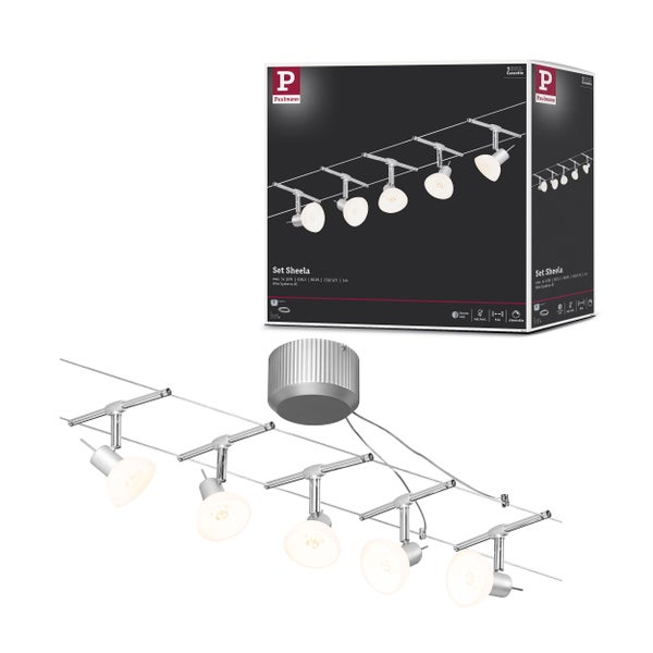Seilsystem Sheela Basisset GU5,3 max. 5x10W dimmbar 230/12V Chrom matt, Opal