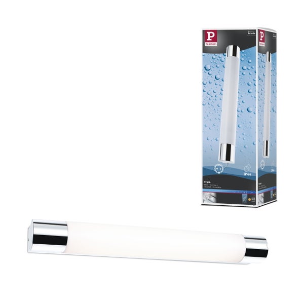 Die Orgon vereint Funktionalität und schlichtes Design. Die Wandleuchte in Chrom verfügt über eine integrierte Steckdose, die sich perfekt hinter einer seitlichen Abdeckung verbirgt und damit für einen zusätzlichen Stromanschluss im Bad sorgt. Der sattinierte Diffusor sorgt für eine blendfreie und gleichmäßige Ausleuchtung des Spiegelbereiches. Mit IP44-Spritzwasserschutz ist sie bestens für den Einsatz im Badezimmer oder Feuchtraum geeignet. Ein fest verbautes LED-Leuchtmittel ist im Lieferumfang enthalten.