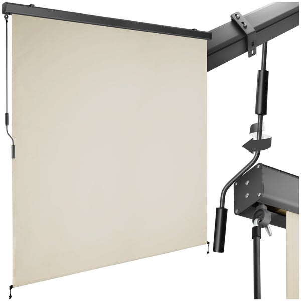 Ein echtes Must-haveDie anpassungsfähige Senkrechtmarkise Eloise von tectake ist die ideale Lösung, wenn Du Dir auf Deiner Terrasse oder Deinem Balkon nicht nur angenehmen Schatten, sondern auch einen zuverlässigen Sichtschutz wünschst – perfekt, um an sonnigen Tagen einen kühlen Kopf zu bewahren.Durchdachtes DesignDank des leichtgängigen Kurbelantriebssystems lässt sich die Markise mühelos auf die gewünschte Länge ausfahren und bietet so immer genau den Schutz, den Du gerade brauchst. Durch zwei stabile Wandhalter wird sie im ausgezogenen Zustand sicher fixiert und bleibt so auch bei leichtem Wind zuverlässig in Position. Besonders praktisch: Das mitgelieferte Montagematerial ermöglicht eine unkomplizierte und schnelle Anbringung an Wand oder Decke.Beste QualitätDer robuste Stoff aus wasserabweisendem Polyester überzeugt mit einem hohen UV-Schutz, während das pulverbeschichtete Aluminiumgehäuse maximale Stabilität und Langlebigkeit garantiert.Entdecke die flexible Senkrechtmarkise Eloise von tectake und schaffe Dir Deine ganz persönliche Wohlfühloase in Deinem Außenbereich.