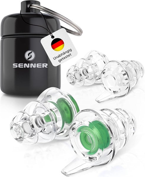 Senner MusicPro - Gehörschutz Ohrstöpsel Konzert, Festival, Musik und Party - Gehörschutz für Musiker, mit Schlüsselanhänger - Hi-Fi Gehörschutzstöpsel Earplugs | SNR 19 dB, transparent/grün