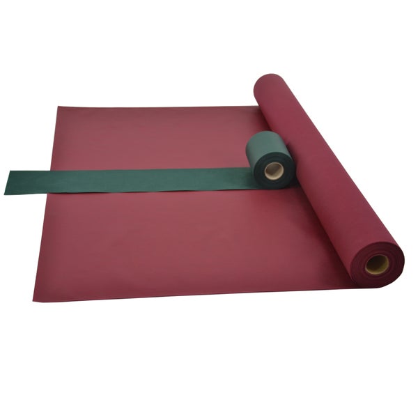 Sensalux Kombi-Set 1 Tischdeckenrolle 1m x 25m bordeaux + Tischläufer 15cm grün
