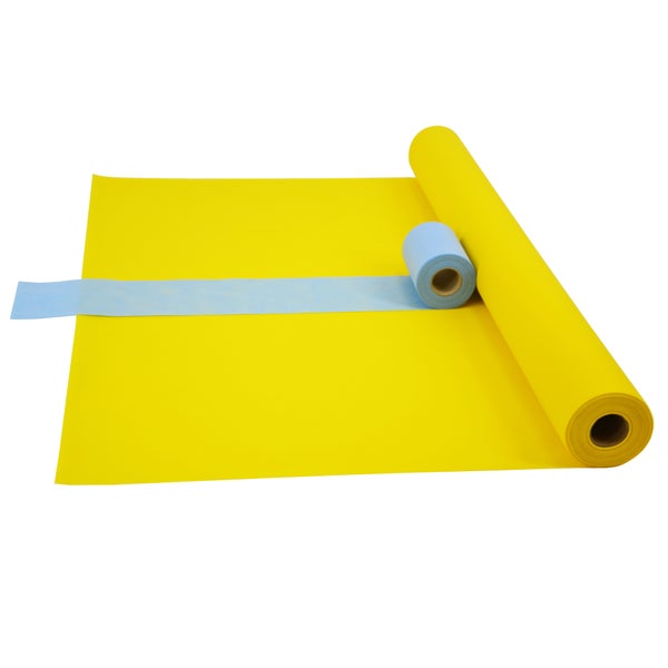 Sensalux Kombi-Set 1 Tischdeckenrolle 1m x 25m gelb + Tischläufer 15cm hellblau