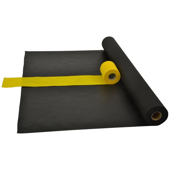 Sensalux Kombi-Set 1 Tischdeckenrolle 1m x 25m schwarz + Tischläufer 15cm gelb