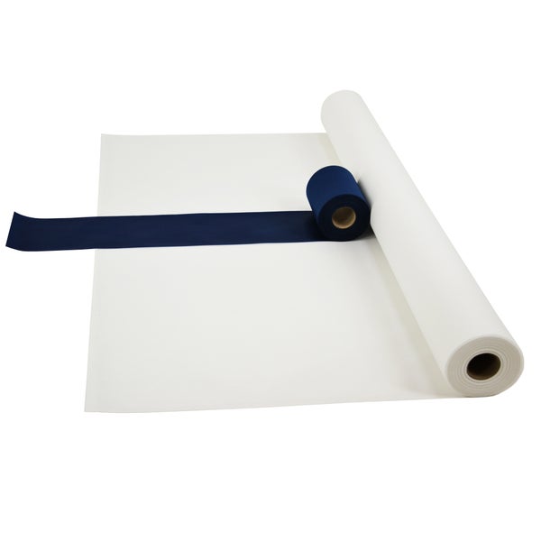 Sensalux Kombi-Set 1 Tischdeckenrolle 1m x 25m weiß + Tischläufer 15cm blau