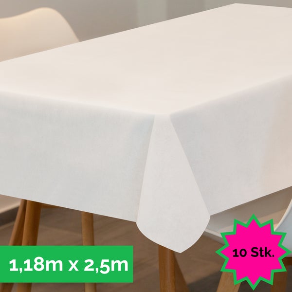 Sensalux Tischdecke, abwaschbar, Vorteilspack, 10 Stück, 1,18m x 2,5m, Weiß