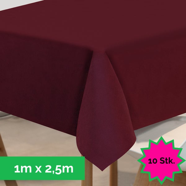 Sensalux Tischdecke, abwaschbar, Vorteilspack, 10 Stück, 1m x 2,5m, Bordeaux